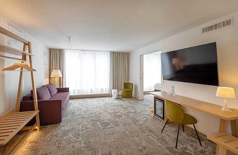 This air-conditioned suite featuring a leather sofa, a big work desk. It comes with a flat-screen cable TV and some have a balcony (subject to availability).